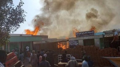 حريق يقضي على «40» محلا تجاريا بمدينة نيالا